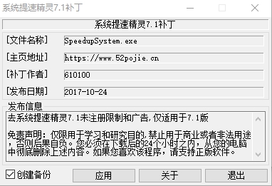 将"patch.exe"移动到系统提速精灵安装目录,然后以管理员身份运行,点击应用即可.